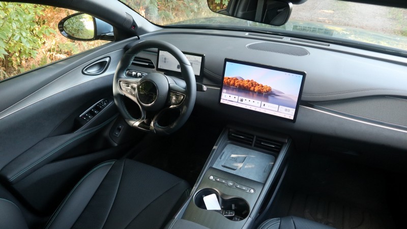 De auto is voorzien van vegan leder en beschikken over verwarming en verkoeling. De verkoeling werkt echter anders dan bij menig ander fabrikant. De verkoeling blaast in dit geval namelijk geen koude lucht door de stoel maar zuigt juist lucht weg tussen het zitvlak van de gebruiker en de stoel; een bijzondere gewaarwording. De achterbank zit prima maar door het accupakket is de bodem hoog en zitten je knieën in een flinke hoek. Als volwassene kunnen we ons voorstellen dat dit na enige tijd kan gaan irriteren. Kinderen zul je er waarschijnlijk niet over horen.